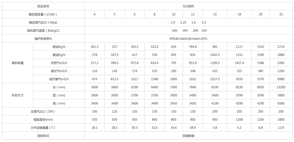 SZS燃油氣蒸汽鍋爐